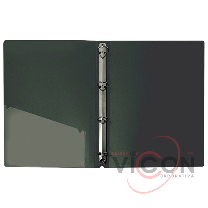 Папка изготовлена из полипропилена. Имеет четыре кольца и два прозрачных кармана на торце и в середине