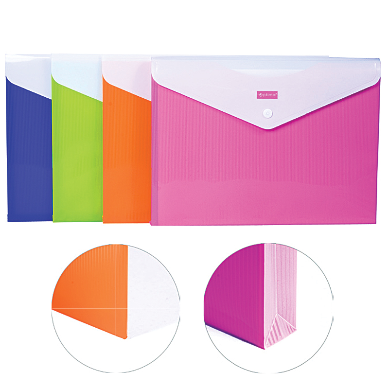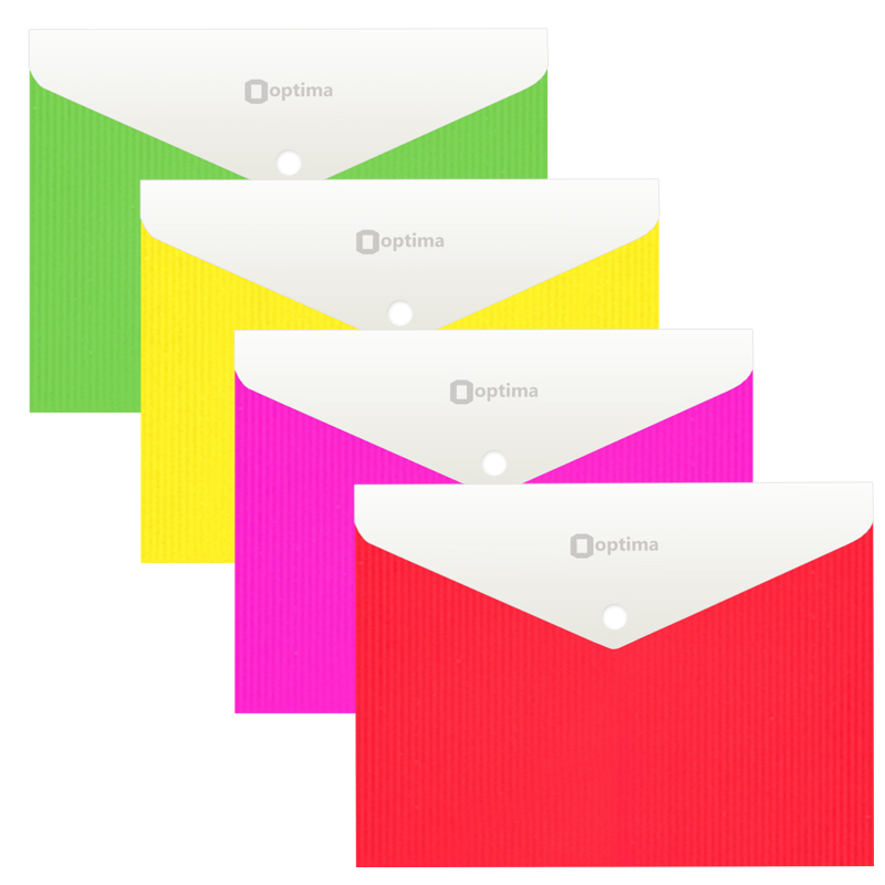 Папка-конверт на кнопке, c расширением, A4, Optima, ассорти