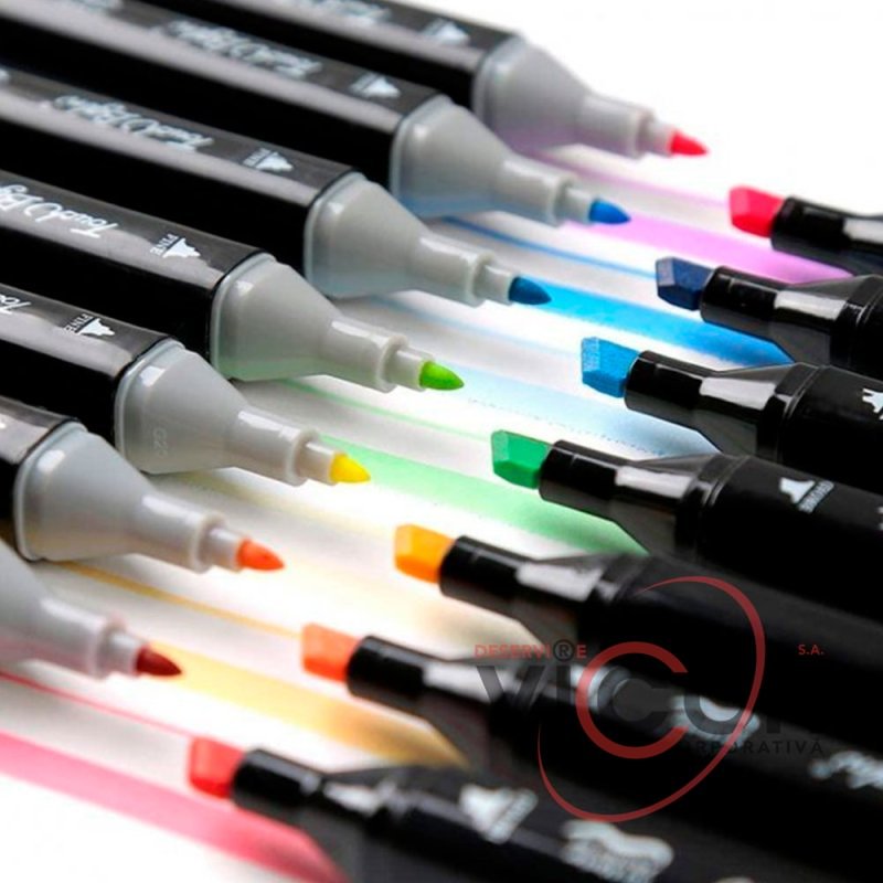 Профессиональные, двусторонние маркеры для дизайнеров, граффити-художников, иллюстраторов и любителей скетчинга. Они обладают двумя главными особенностями: специально разработанными спиртовыми чернилами, и уникальным эргономичным корпусом. Маркер идеально ложится в руку, им легко работать, а результат всегда великолепный. Каждый маркер имеет по два пера — классическое тонкое и скошенное широкое. О том, с какой стороны находится какое перо говорит специальная маркировка, а цвет колпачка соответствует цвету чернил в маркере. Удобны для комбинированной работы: тонкое для проработки деталей и широкое плоское – для закрашивания больших фрагментов