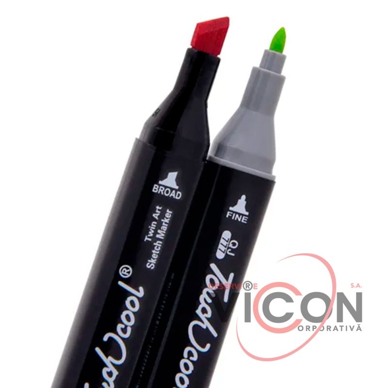 Профессиональные, двусторонние маркеры для дизайнеров, граффити-художников, иллюстраторов и любителей скетчинга. Они обладают двумя главными особенностями: специально разработанными спиртовыми чернилами, и уникальным эргономичным корпусом. Маркер идеально ложится в руку, им легко работать, а результат всегда великолепный. Каждый маркер имеет по два пера — классическое тонкое и скошенное широкое. О том, с какой стороны находится какое перо говорит специальная маркировка, а цвет колпачка соответствует цвету чернил в маркере. Удобны для комбинированной работы: тонкое для проработки деталей и широкое плоское – для закрашивания больших фрагментов