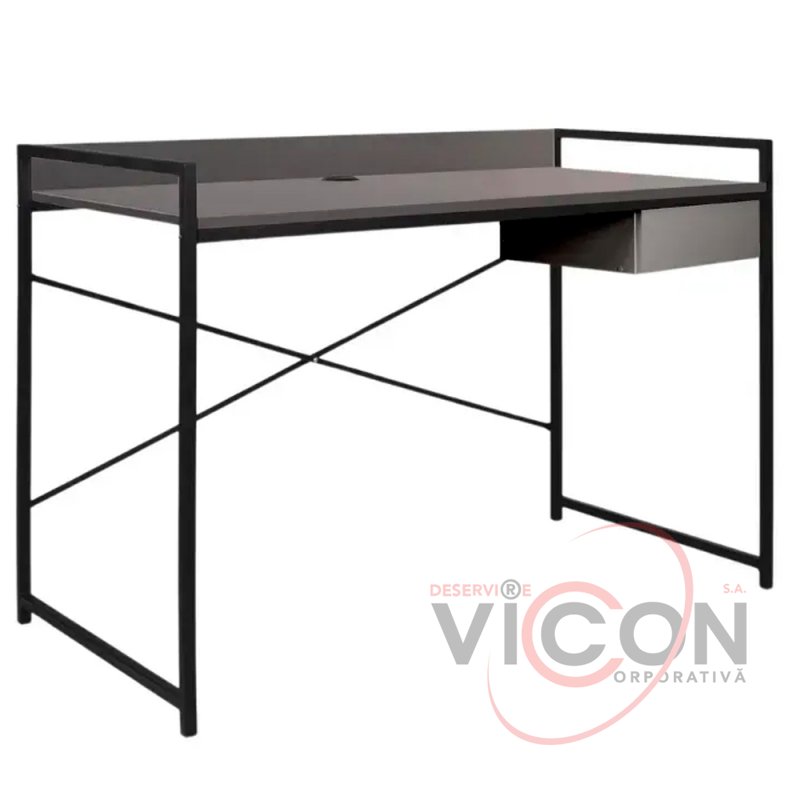 Стол письменный на металлической раме черного цвета. ДСП столешница серого цвета (16 мм) с бортиком, выдвижной ящик. Размеры 1160*610*750/830Н