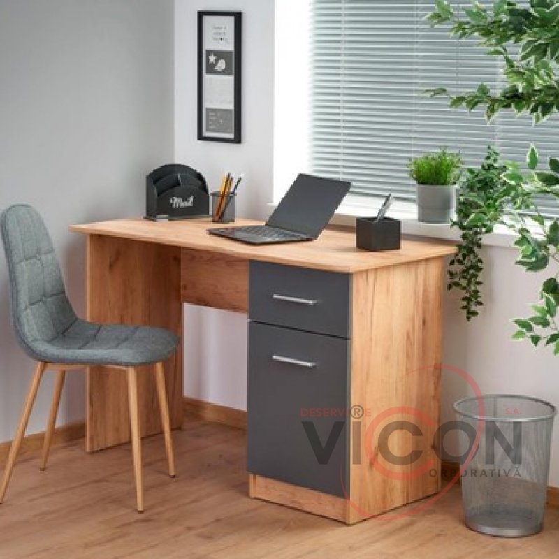 Стол письменный Elmo от польской компании Halmar со столешницей из ДСП. Выдвижной ящик и секция для хранения с дверью.