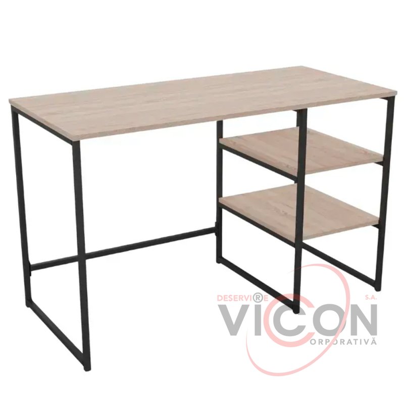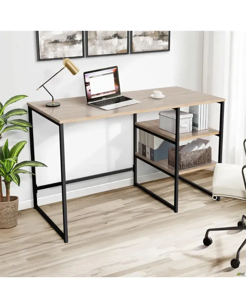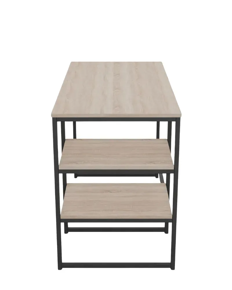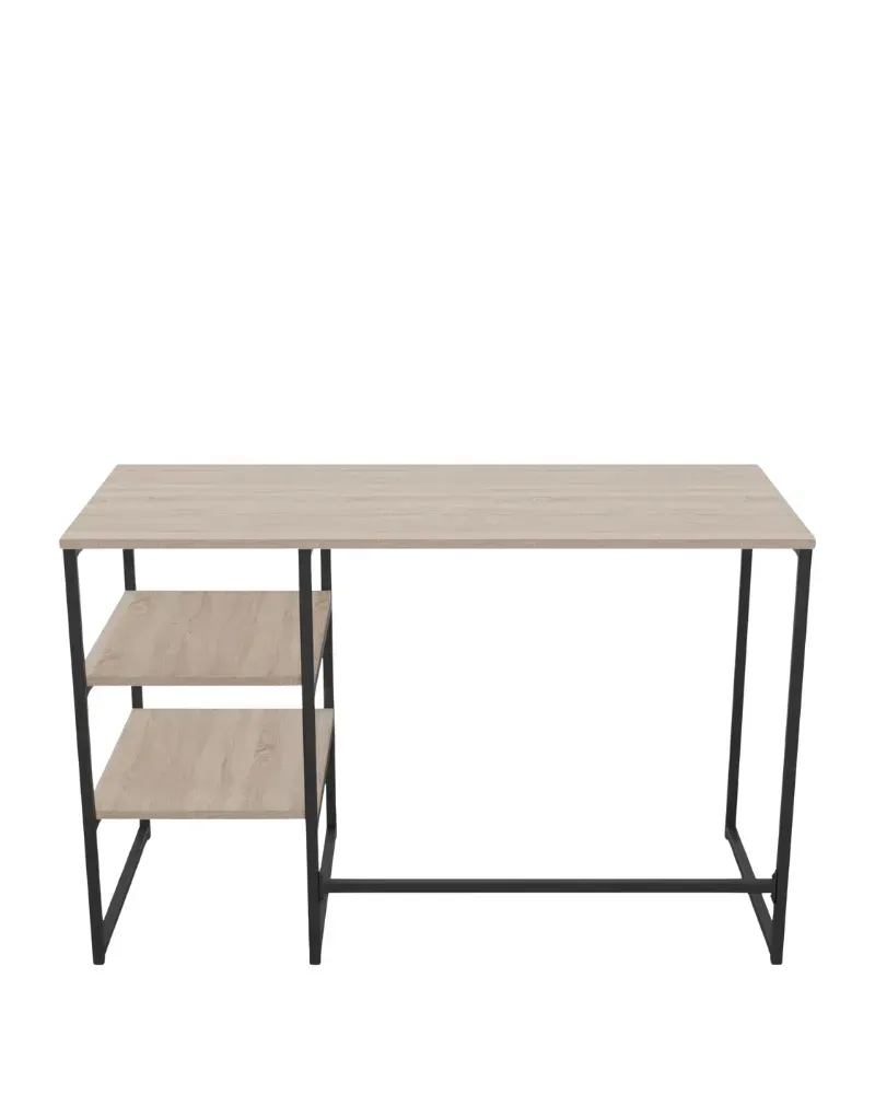 JET - письменный стол на металлических опорах. Столешница изготовлена из ДСП 1190*550мм, каркас из окрашенного в черный цвет металла. Есть два уровня для хранения канцелярских принадлежностей и прочих вещей