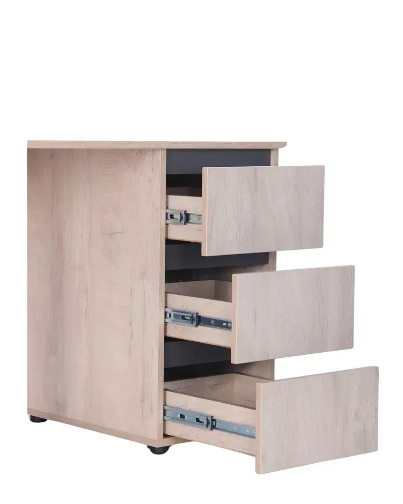 Встроенная тумба на 3 ящика с правой стороны.