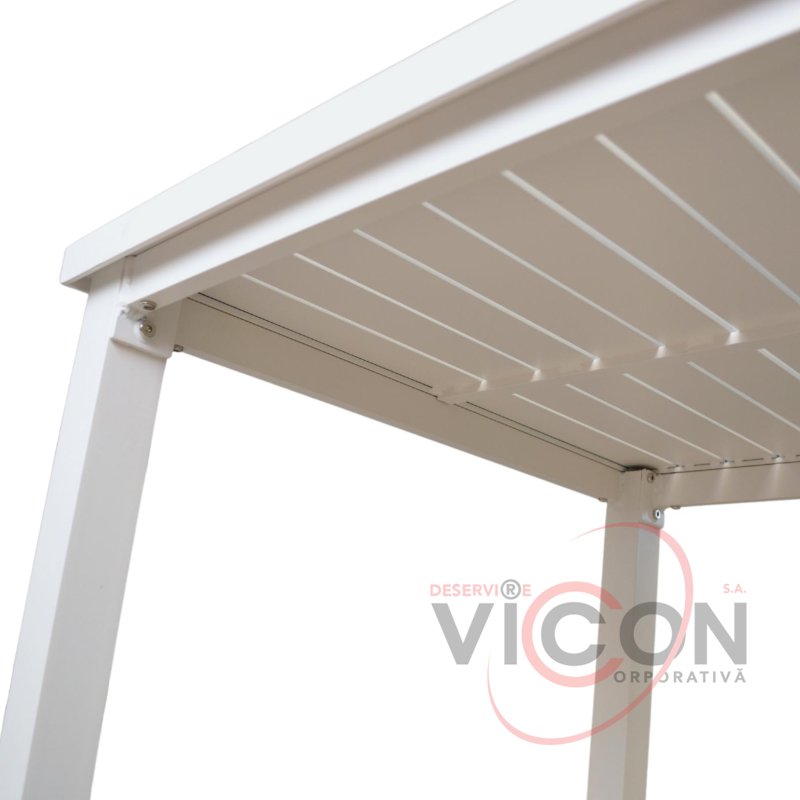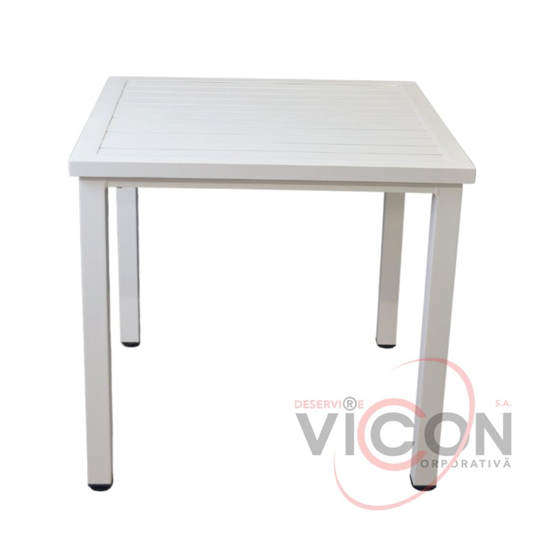 Высота стола 78 см, каркас выполнен из окрашенного алюминия с небольшим весом, что обеспечивает удобство и функциональность.