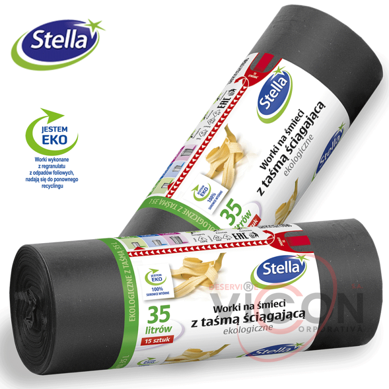 Мешки для мусора 15 шт/35 л, с затяжками STELLA