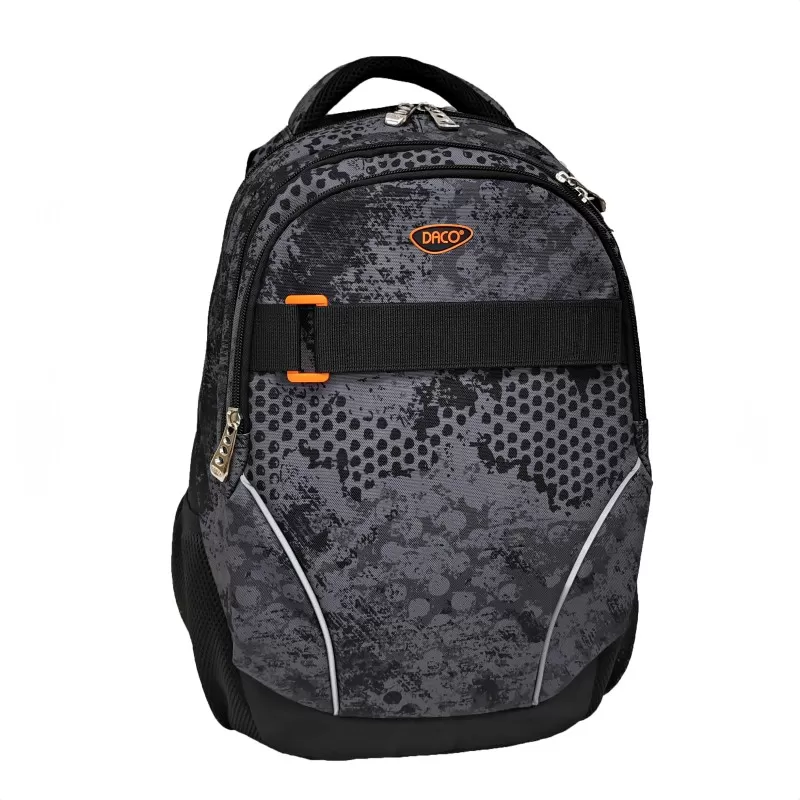 Школьный рюкзак DACO – идеальный аксессуар для подростков и школьников. Эргономичный дизайн и регулируемые ремни делают эту сумку удобной и простой в переноске, а в многочисленных отделениях достаточно места для хранения всех необходимых вещей в течение дня. Он имеет основное отделение, идеально подходящее для книг и блокнотов, и два дополнительных отделения, подходящих для хранения других личных вещей. Также рюкзак оснащен боковыми карманами, в которые можно носить бутылку с водой или другие мелкие предметы. Рюкзак DACO — отличный выбор для подростков и школьников, которые ищут прочный и практичный продукт, а также современный и уникальный стиль.