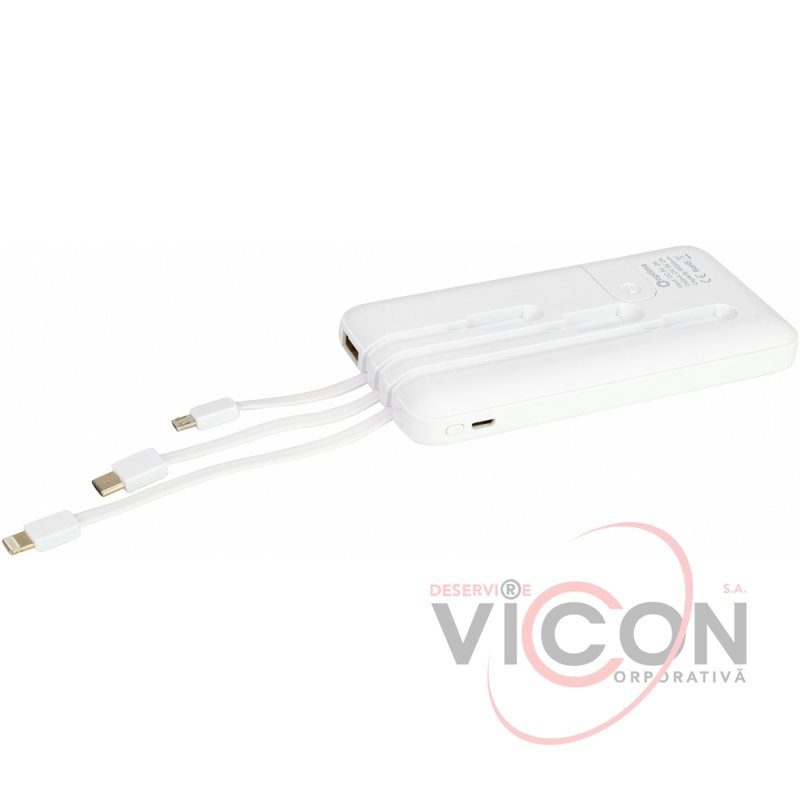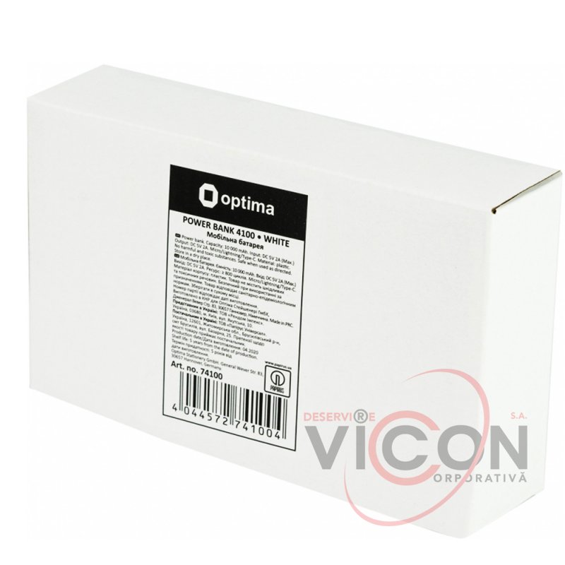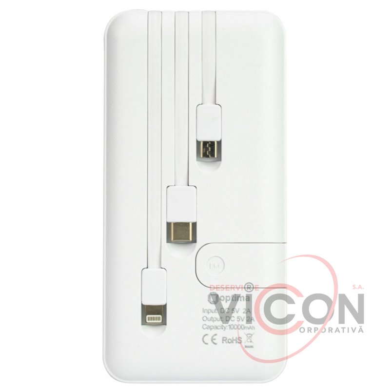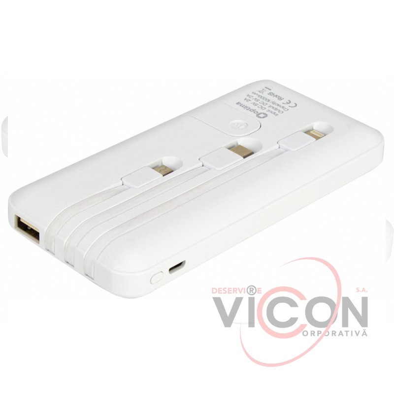 Мобильна батарея (Power Bank) Optima 4100 с подставкой для мобильного телефона. 10 000 mAh, 2*USB output, 5V 2.1A, цвет белый. В комплекте: розъём для IPHONE, Type C