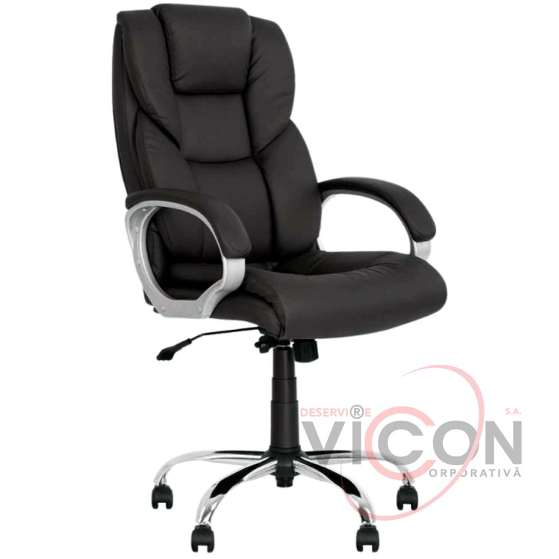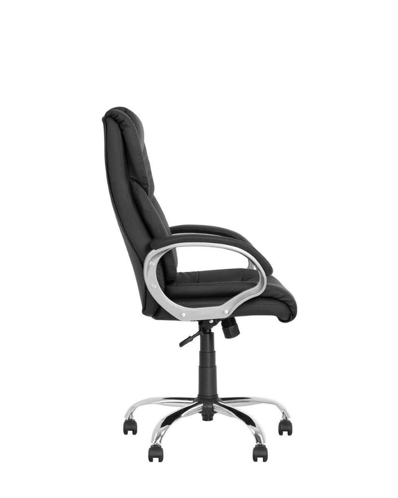 Кресло для руководителя Morfeo. Комфортная эргономика, достигаемая поролоновыми вставками чехла и профильной спинкой, "неплоский" (пухлый) внешний вид кресла в сочетании с оптимальной ценой. Пластиковые подлокотники с обитыми мягкими накладками. Хромированная металлическая база и пластиковые ролики.