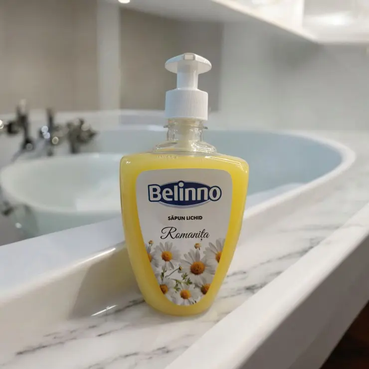 Жидкое мыло Belinno с экстрактом ромашки мягко очищает кожу рук, не пересушивая её. Подходит для ежедневного использования всей семьёй.