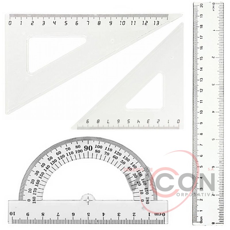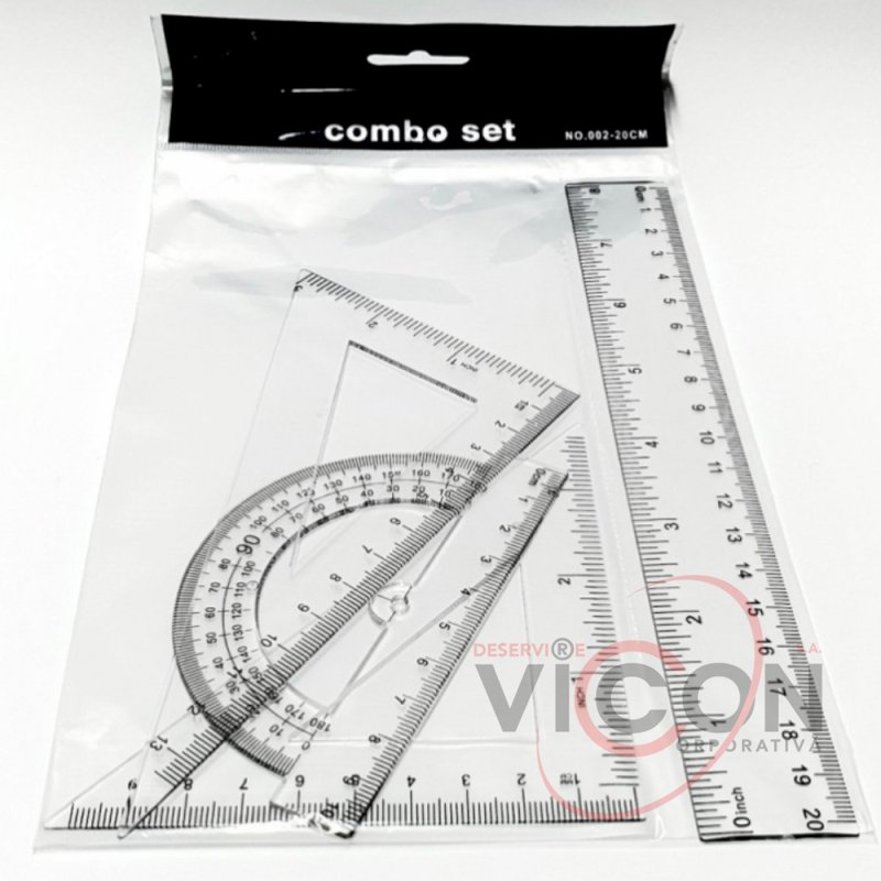 Набор чертежный (линейка 20 см,+2 треугольника+1 транспортир) 002-20