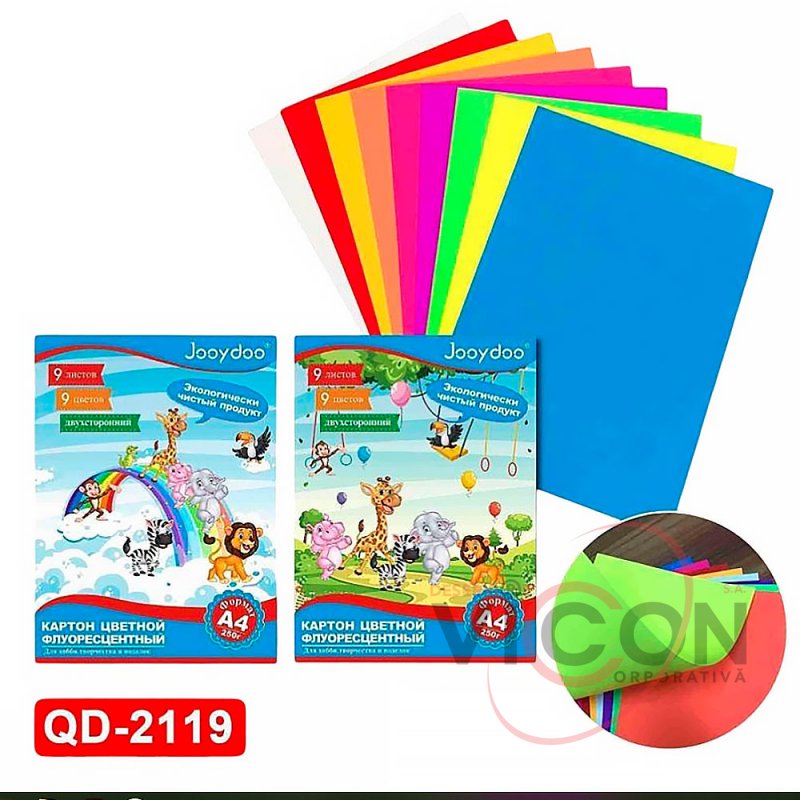 Набор цветной картон А4, флуоресцентный, 9 цветов, 9 листов, QD-2119
