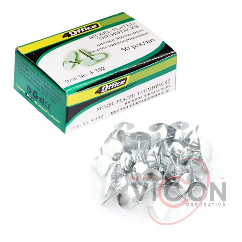 - Кнопки никелированные 4OFFICE предназначены для надежного скрепления бумаги разной плотности, ее фиксации на вертикальных поверхностях.