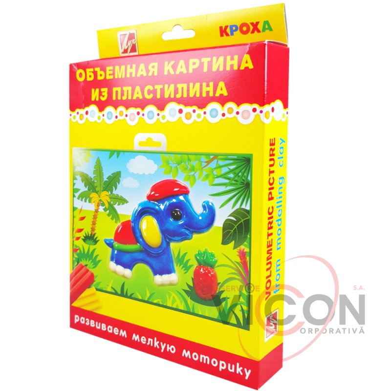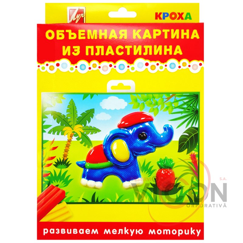 Набор "Объёмная картина из пластилина. СЛОНИК " представлен в серии материалов для малышей "Кроха". Предназначен для создания объёмной картины из пластилина с использованием готовой пластиковой заготовки с сюжетом. В состав набора входит мягкий восковой пластилин 6 цветов, который не требует предварительного разминания и идеально подходит для детских пальчиков, объёмная пластиковая заготовка с рельефом, цветной фоновый рисунок, стек. Для того, чтобы сделать картину, необходимо разместить глазки в специальные углубления на картине, заполнить изнутри рельеф рисунка пластилином, вставить красочный фон, загнуть края. И объемная картина готова. Она послужит оформлением творческого уголка в детской или подарком для бабушки, дедушки, мамы, папы или любимого воспитателя.