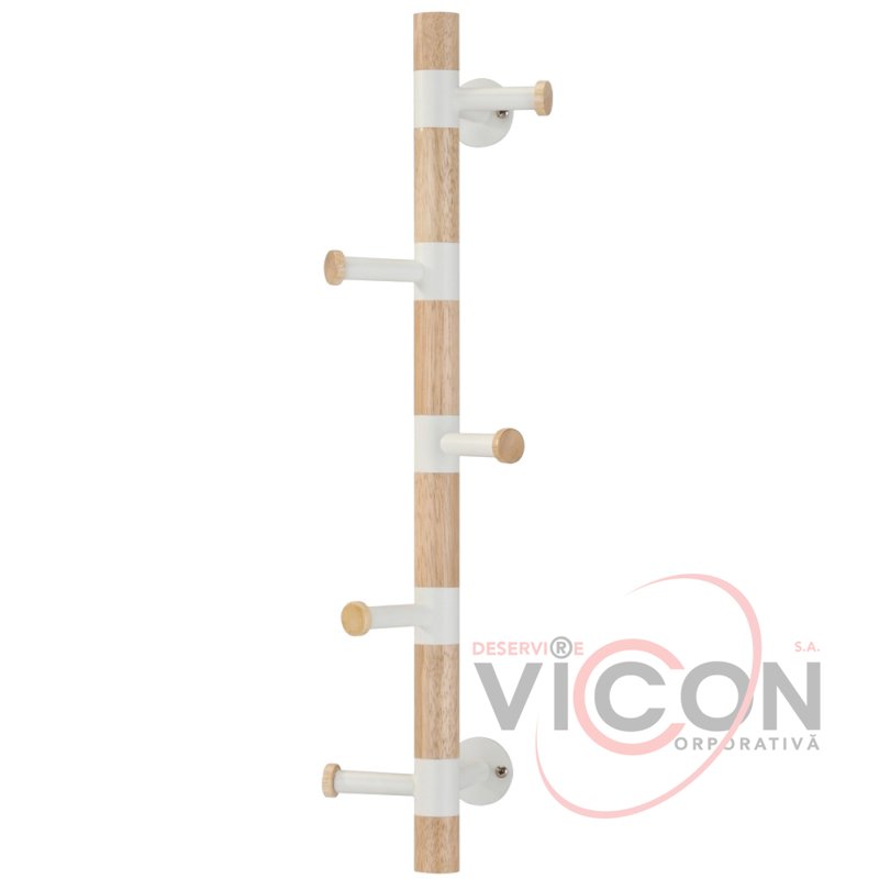 Вертикальная настенная вешалка из дерева и металла. Оборудован 5 металлическими вешалками с элементами из лакированной древесины.