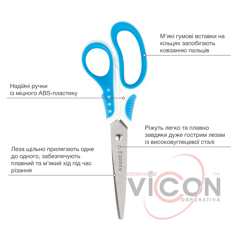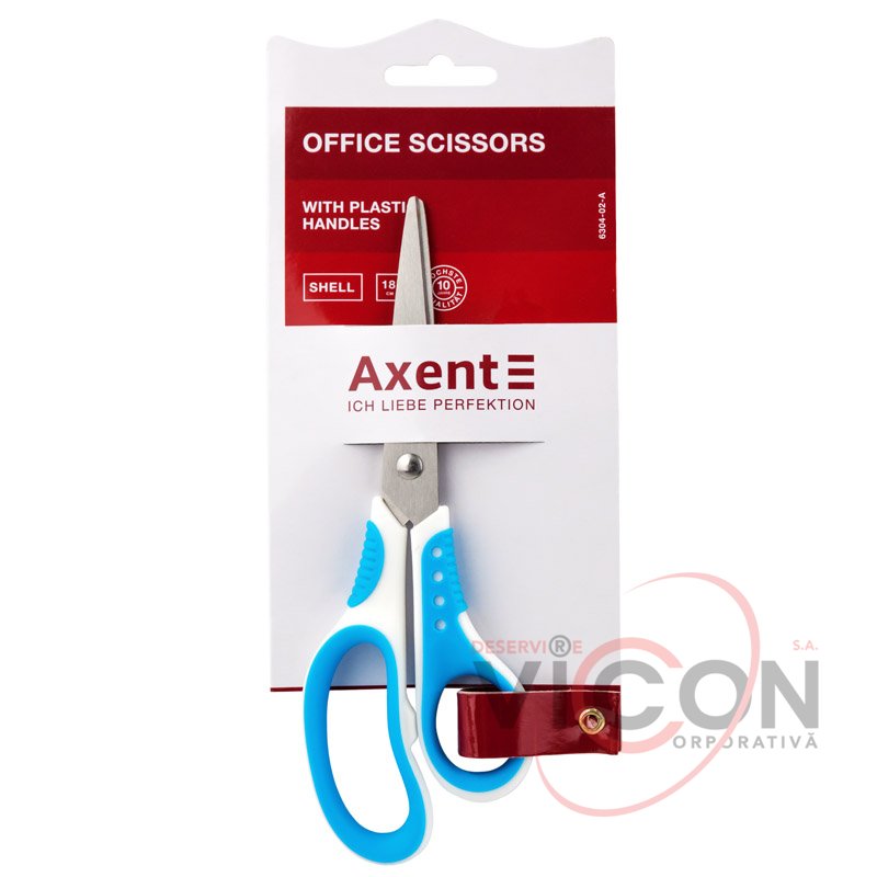 Ножницы Axent Shell 6304-02-A, 18 см, с прорезиненными ручками, бело-голубые