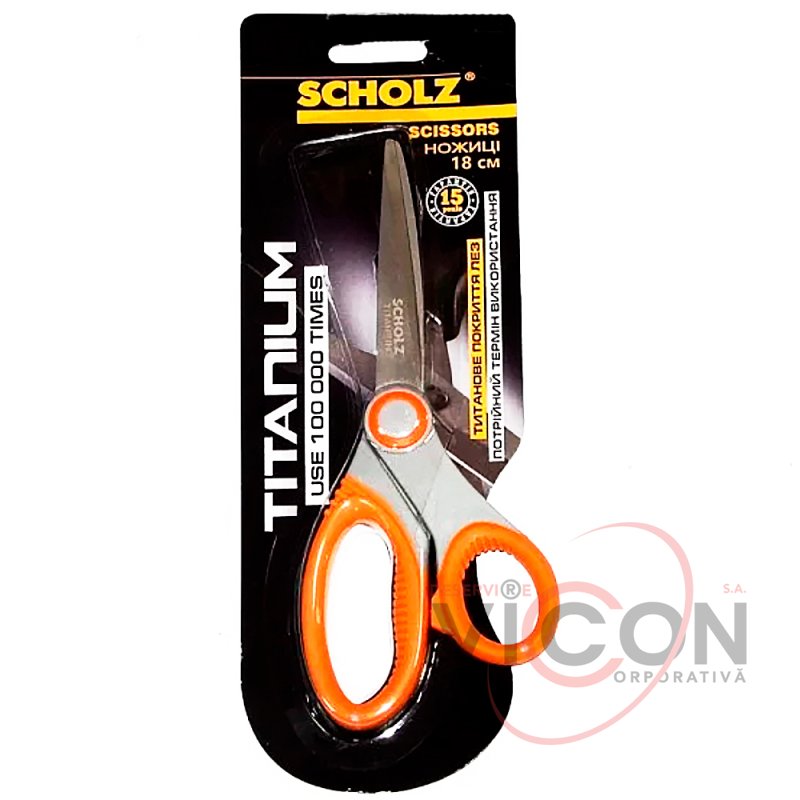 Ножницы офисные Scholz Titanium 4262, 18 см усиленные, прорезиненные ручки