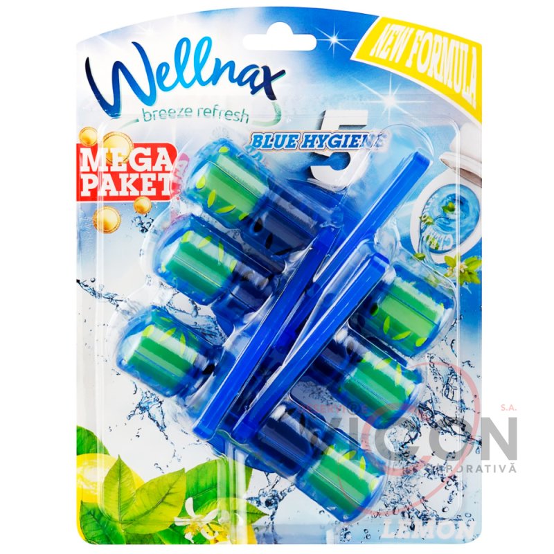 - Использование блока Blue Hygiene Wellnax убережет вашу сантехнику от известковых и солевых отложений, ржавчины и надолго продлит эксплуатацию. При каждом смывании унитаз получает чистоту и дезинфицирующий эффект.