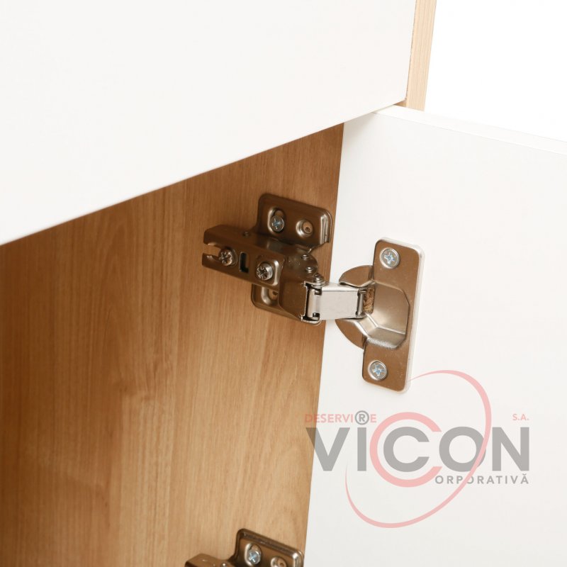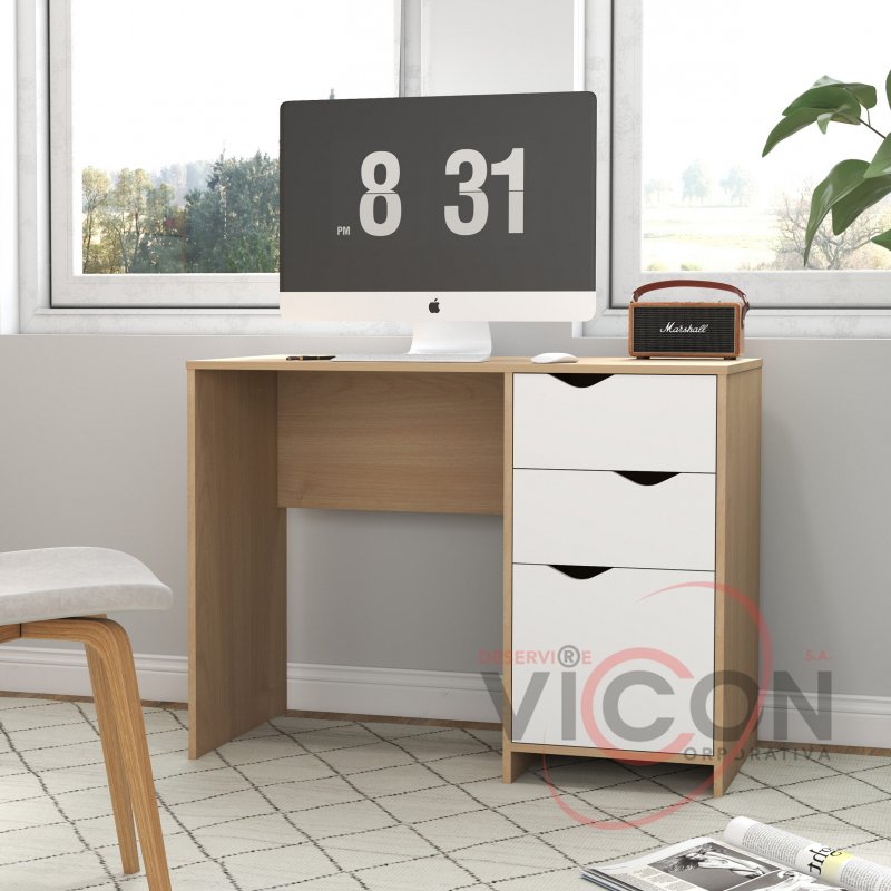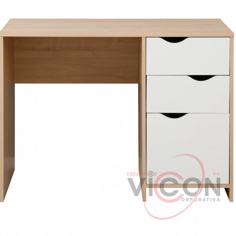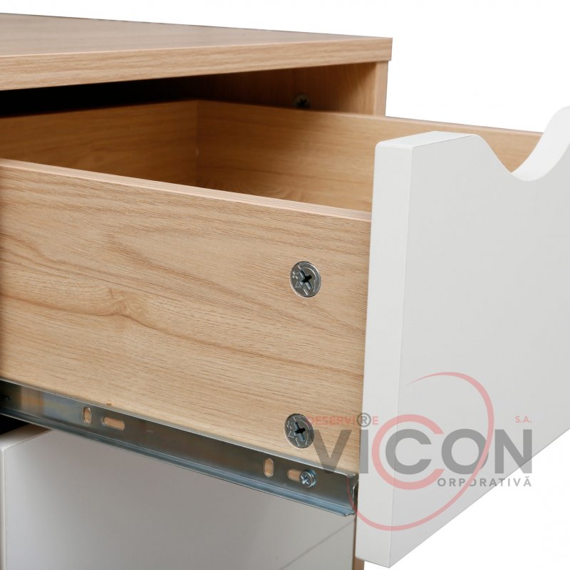 Офисный стол Camaro идеально сочетает современный дизайн и функциональность. Изготовлен из ДСП класса E1 с меламиновым покрытием, отличается элегантным сочетанием цветов — белый M58 для двух ящиков и дверцы, а остальные элементы выполнены в оттенке дуб M37, что придаёт изделию утончённый контраст и современный вид.