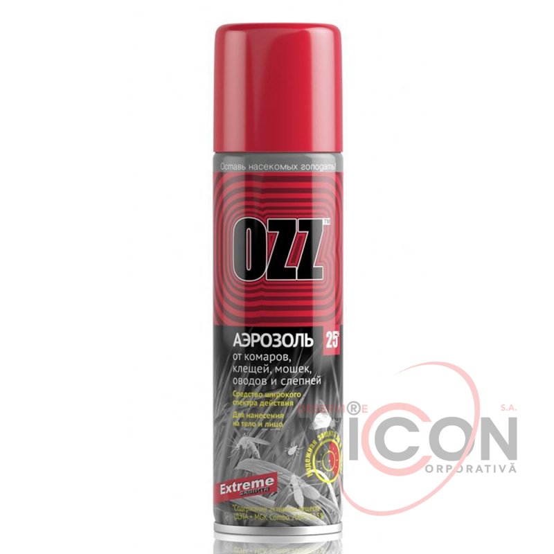 Универсальное средство «OZZ Extreme».Уникальный репеллент-аэрозоль, высокая эффективность которого, достигнута за счет введенного в его рецептуру запатентованного вещества-синергиста MGK. В несколько раз усиливающего действие ДЭТА (25%), входящего в состав средства. MGK-Combo единственное вещество, зарегистрированное в России, как реально действующее вещество от клещей, наносимое на тело. Средство имеет широкий спектр действия, а его эффективность подтверждает надежная степень защиты до 5 часов не только от комаров, клещей и мошек, но и от слепней и оводов.