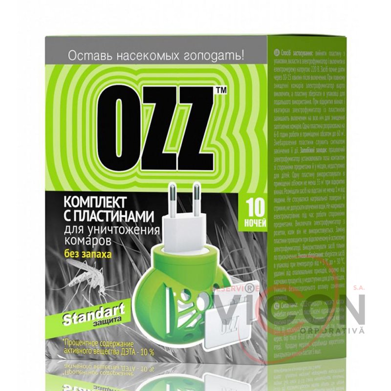Комплект с пластинами для уничтожения комаров 10 ночей.Современные электрофумигаторы достигают максимального эффекта в уничтожении комаров, так как обеспечивают оптимальную температуру, необходимую для испарений действующего вещества пластин, и равномерно прогревают их. Дополнительные пластины «OZZ» для уничтожения комаров серии Standard или Ultra защита можно приобрести отдельно. Универсальный прибор электрофумигатор (диффузор) «OZZ» используется как с пластинами от комаров «OZZ», так и с жидкостью.