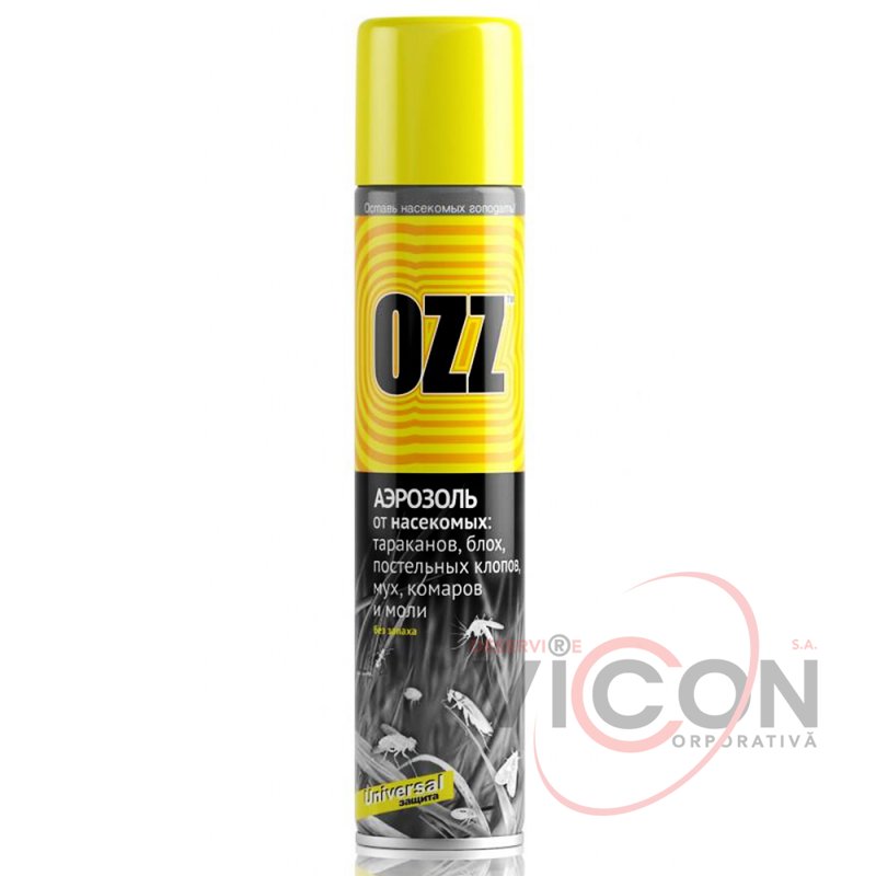 Аэрозоль «OZZ» от летающих и ползающих насекомых.Современная многокомпонентная формула делает средство универсальным. Немедленное действие с длительной активностью для уничтожения ползающих и летающих насекомых (тараканов, муравьев, постельных клопов, блох, моли, мух, комаров).