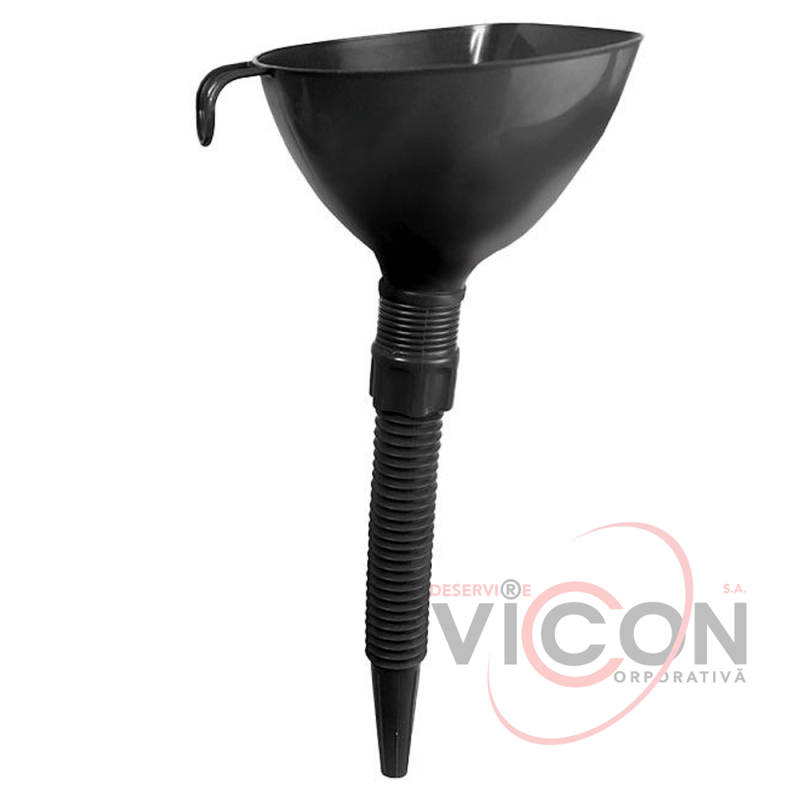 Обладает гофрированным носиком, что позволяет держать воронку вертикально в любом случае.
