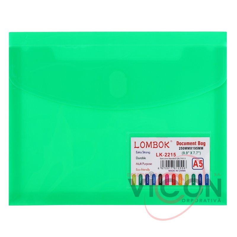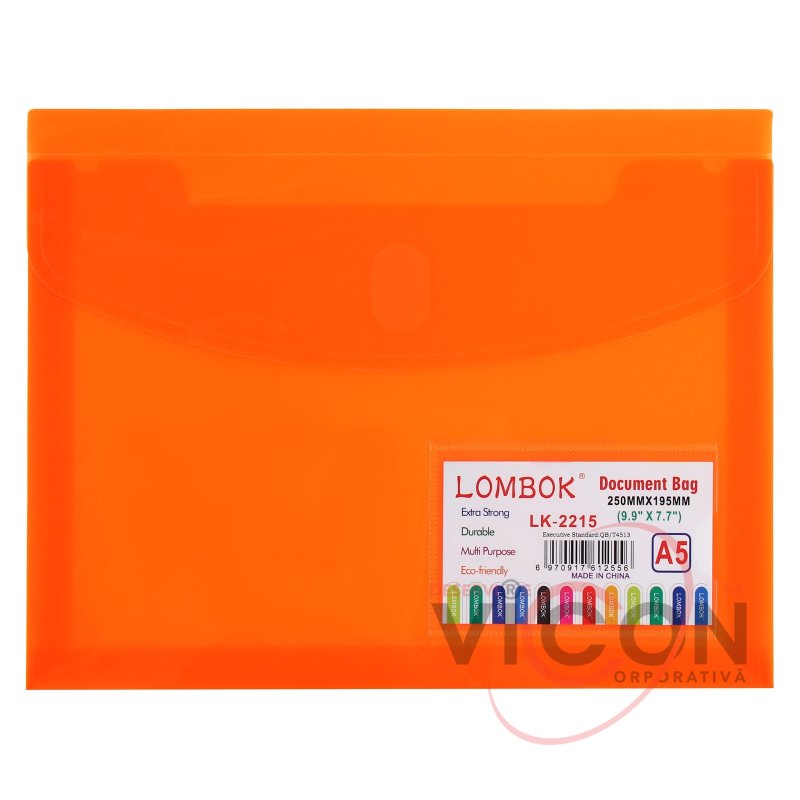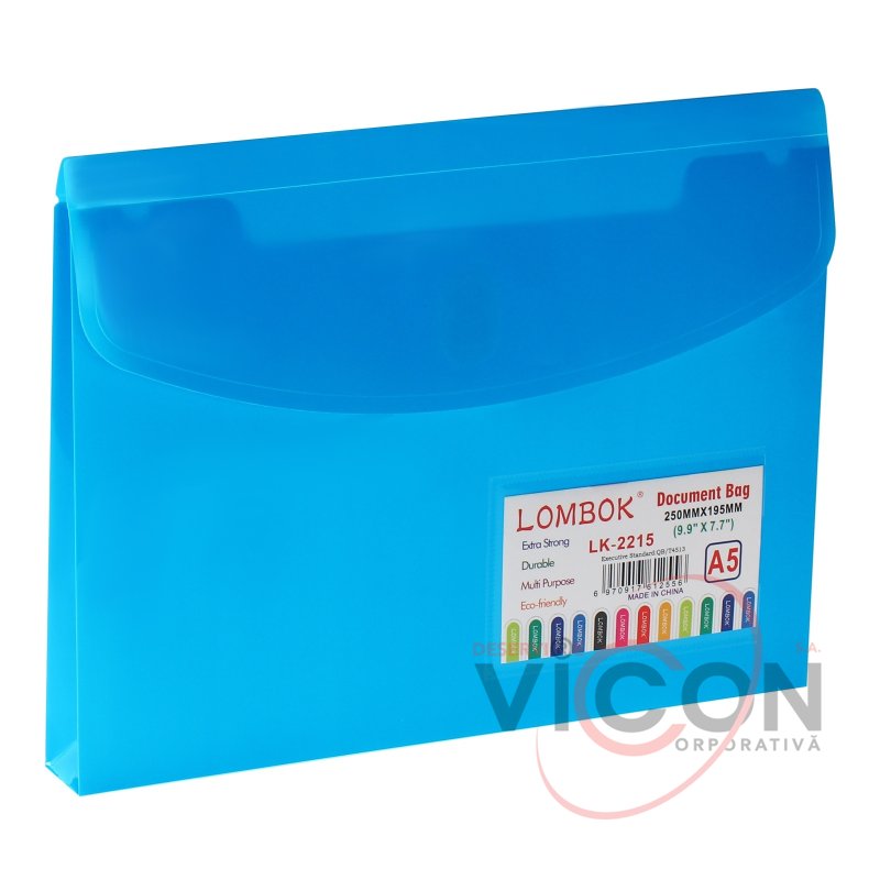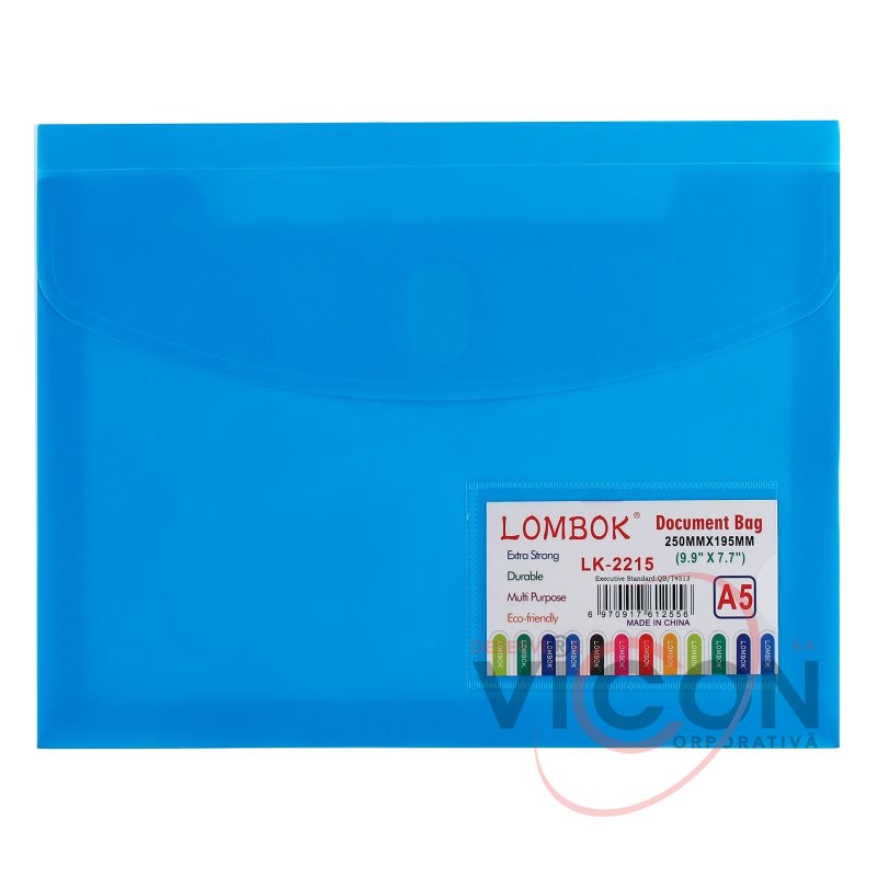 Папка-конверт на липучке А5, 180 мкр, с расширением, карман для визиток