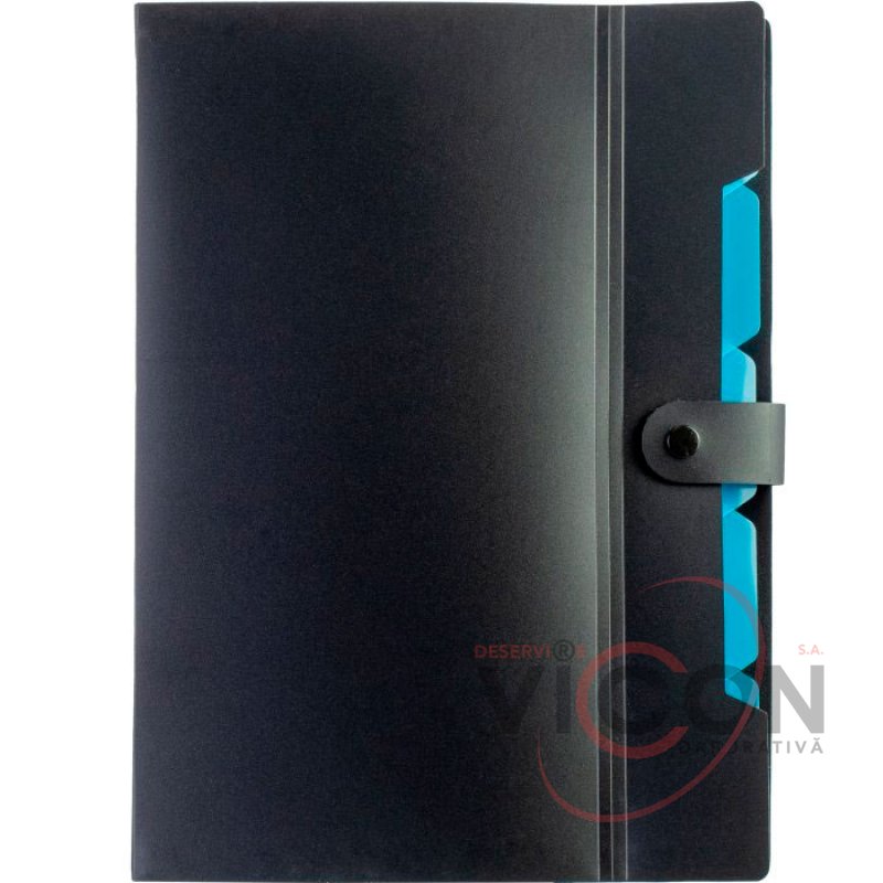 Папка на 6 отделений на кнопке с расширением A4, черная с голубым