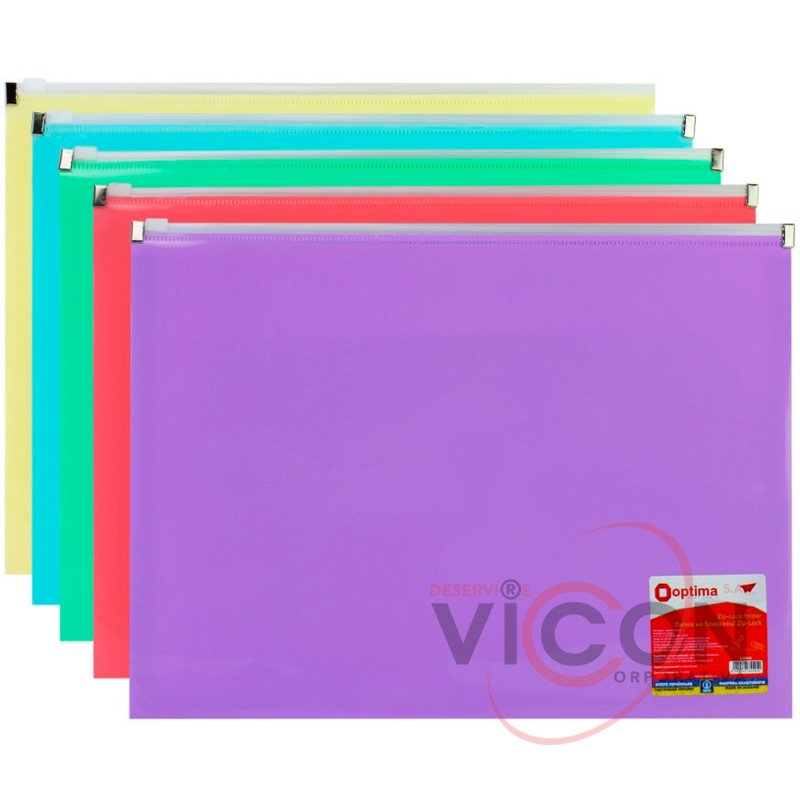 Папка пластиковая А4 Optima на застежке zip-lock, пастельная, ассорти