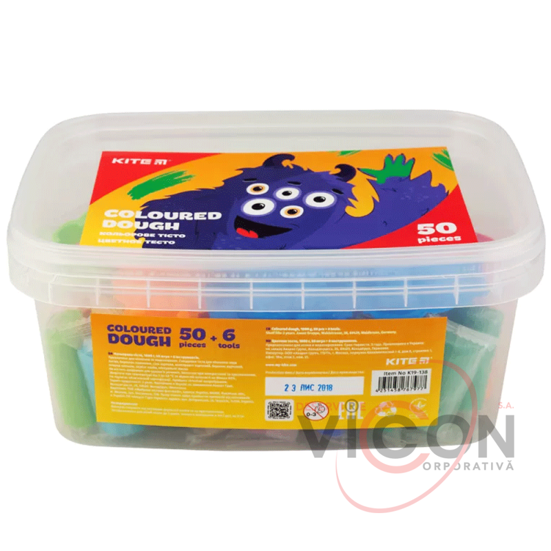 Цветное тесто - это красочный, тактильно приятный и максимально природный по составу материал для детского творчества. Набор цветного теста Kite в большом пластиковом ведерке состоит из 50 пакетиков с тестом по 20 г разных цветов, а также содержит 6 инструментов для работы с тестом. Детское тесто предназначено для лепки и моделирования. Помогает ребенку развить мелкую моторику, логику, фантазию, творческие способности. Тесто Kite очень пластичное и послушное в детских руках, не крошится. Приятное в работе - не оставляет цветных или жирных следов на руках. Цвета хорошо смешиваются между собой. Состоит из натуральных пищевых компонентов, безопасно для здоровья ребенка. Для сохранения эластичности теста его следует хранить в герметичном пакете или коробочке. Поскольку тесто из натуральных компонентов, на открытом воздухе оно затвердевает в течение 24-х часов. Для восстановления эластичности теста добавьте несколько капель воды. Состав теста Kite: вода, мука пшеничная, соль пищевая, консервант пищевой, краситель пищевой хлорид кальция, минеральное масло.
