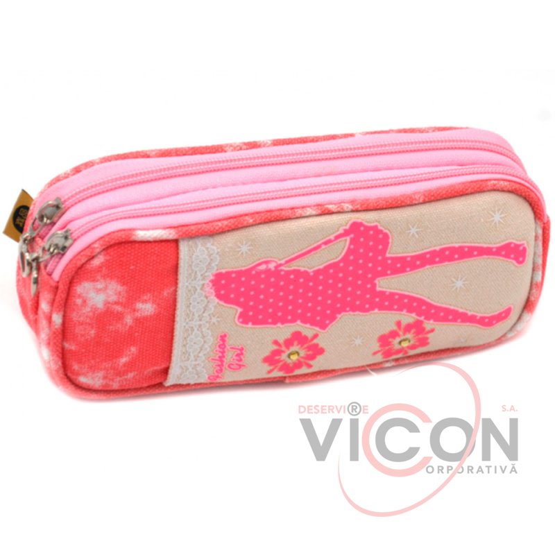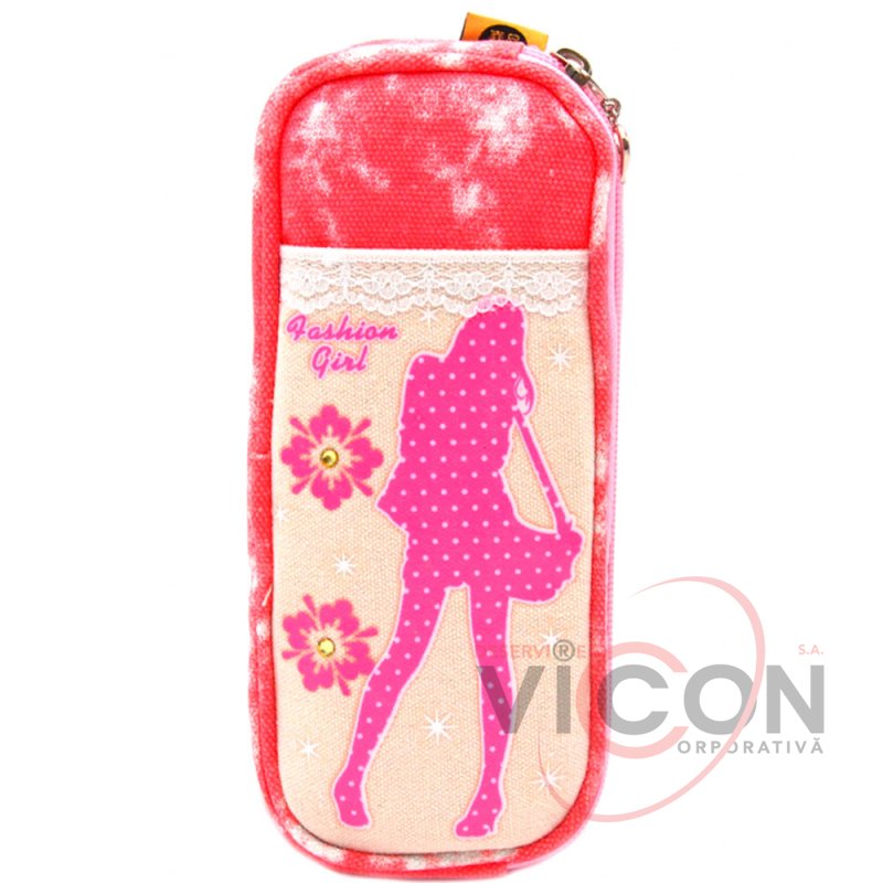Пенал на молнии, синий с блестками, 195х60х50 мм