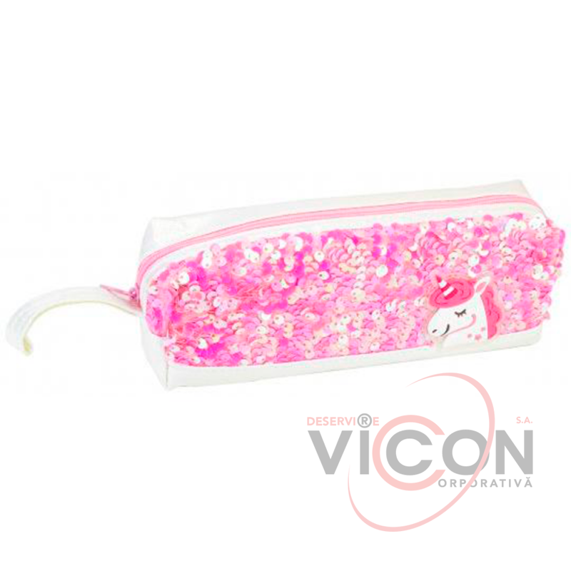 Пенал 1 молния с пайетками Unicorn Fucsia