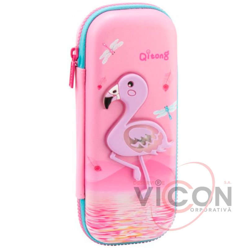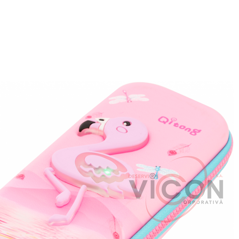 Пенал 1 молния Qitong Flamingo (светодиодная аппликация)