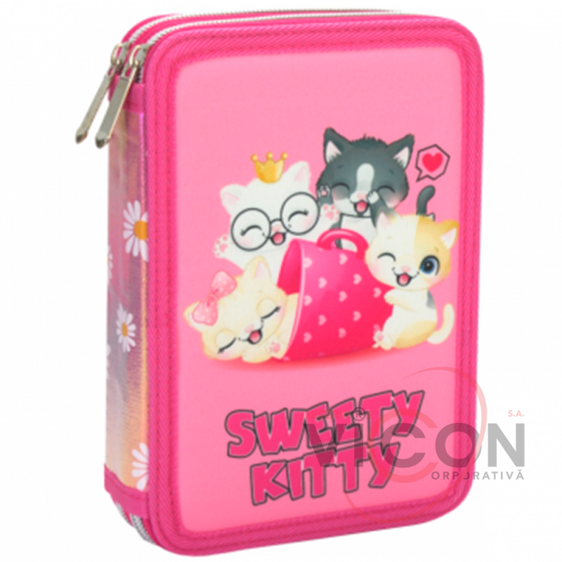 Пенал на с 2 молниями с клапанами Sweety kitty (розовый)