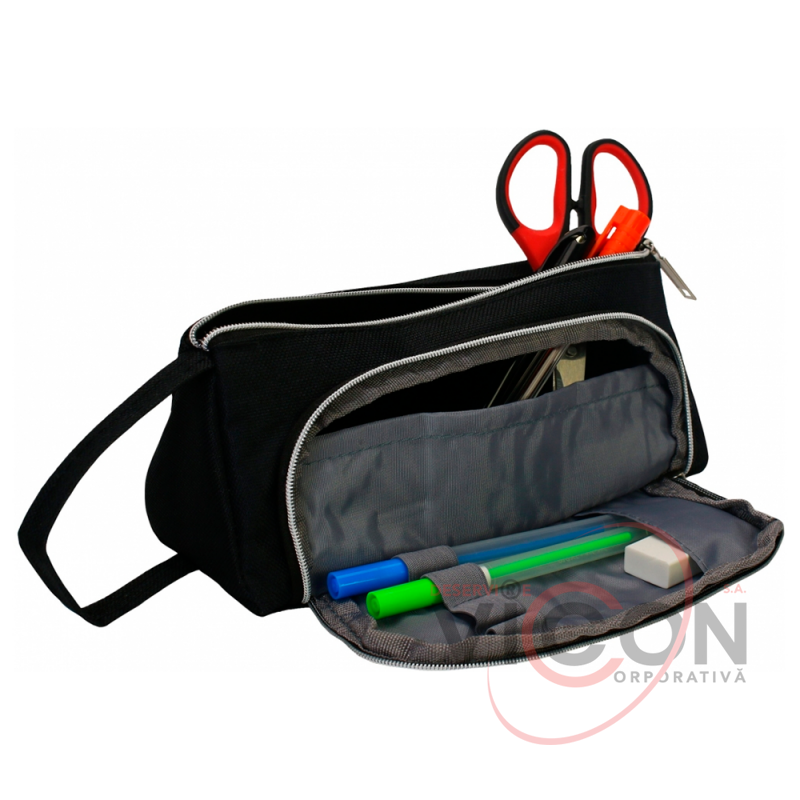 Пенал с 2 молниями черный