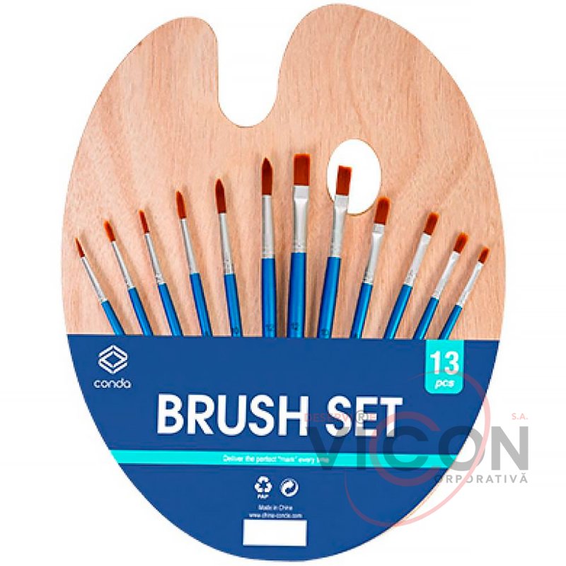 Кисти Conda, синтетические 12шт + фанерная палитра