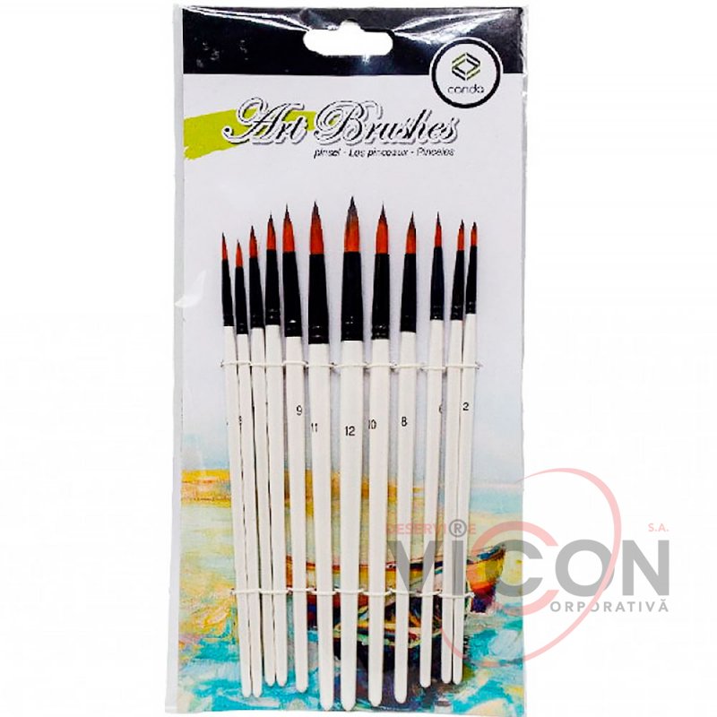 Кисти круглые из нейлона, 12 штук, Conda