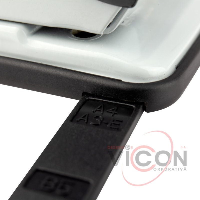 Дырокол Axent Exakt-2 3920-01-A имеет надёжный корпус и все рабочие механизмы выполнены из металла. Оснащён выдвижной ограничительной линейкой с точной шкалой фор - матов бумаги. Съёмный резервуар для конфетти. Прорезиненная подошва.