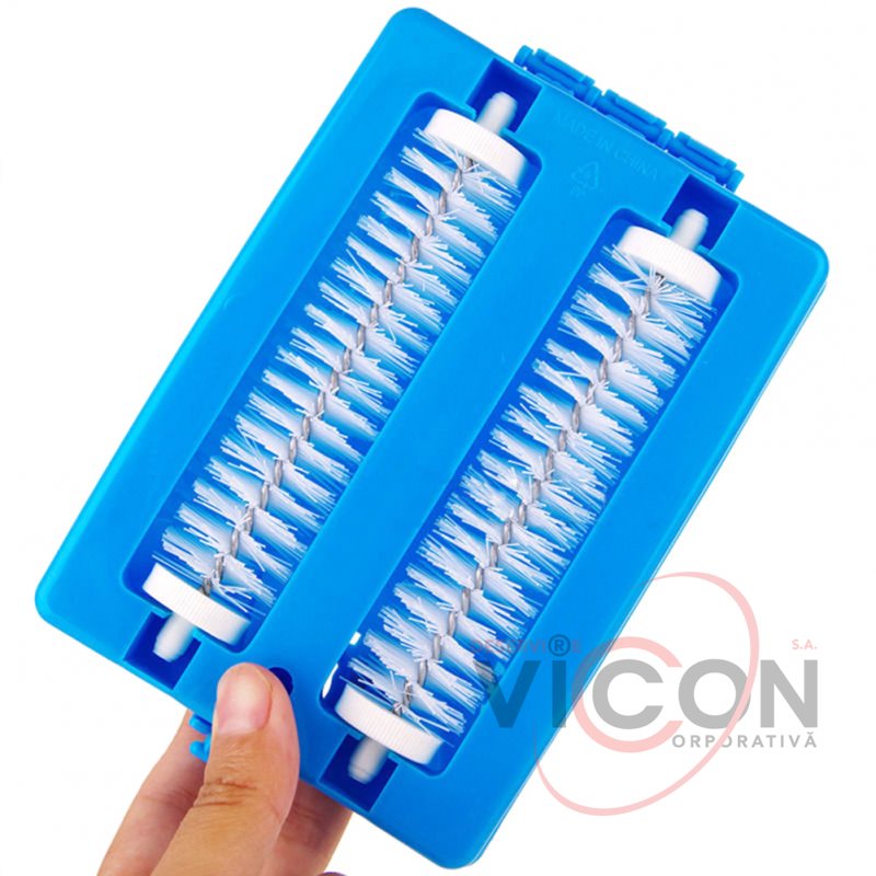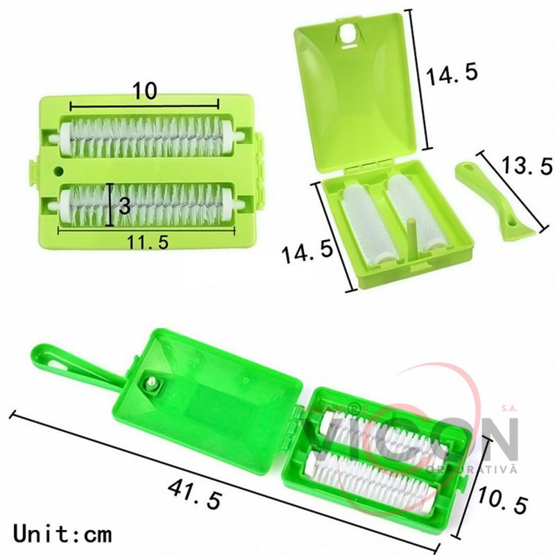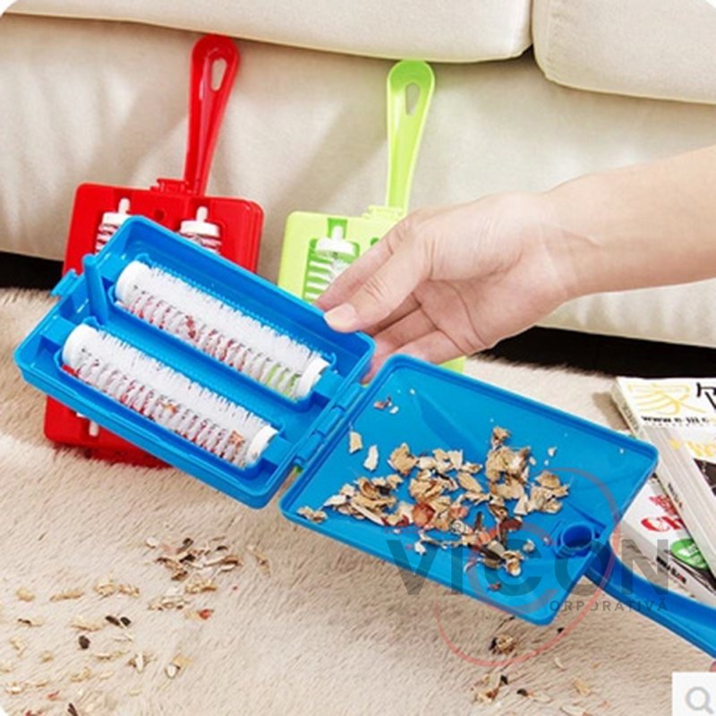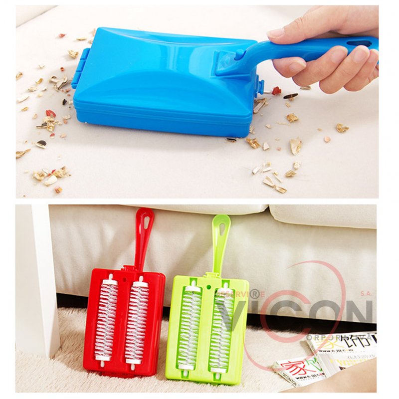 Двойная щетка с ручкой эффективно собирает мусор, волосы, другие загрязнения.