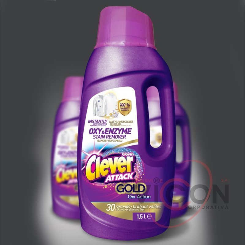 Пятновыводитель кислородный жидкий CLEVER 1,5 л. ATTACK