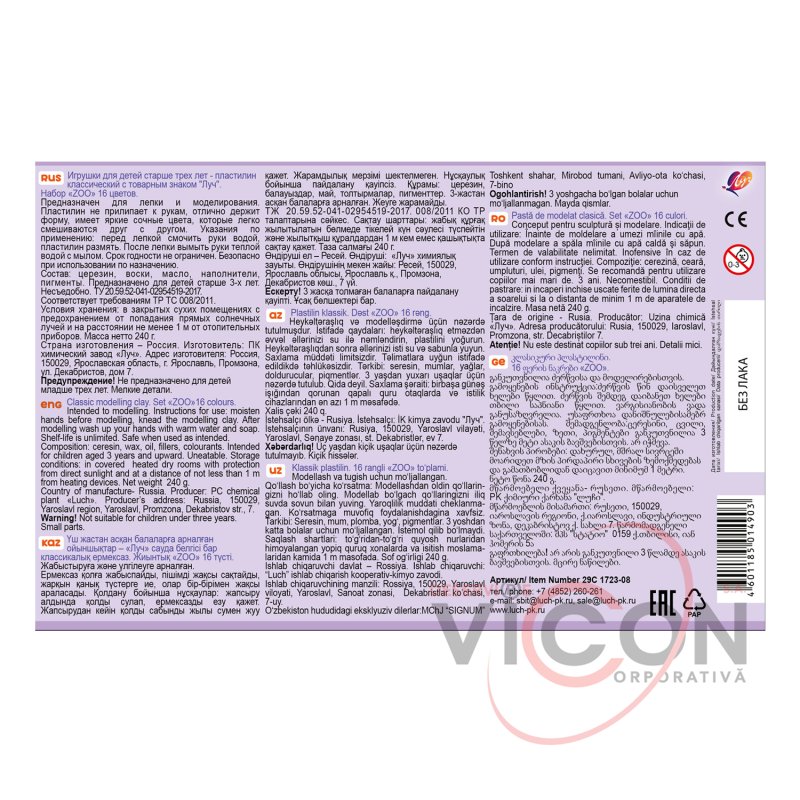 Пластилин «Zoo» предназначен для лепки и моделирования в детском творчестве. Яркий и пластичный пластилин изготовлен из высококачественных компонентов.