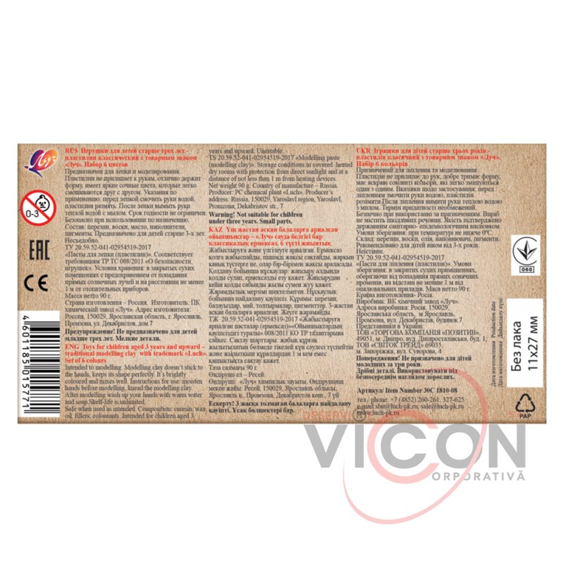 Набор пластилина упакован в картонную коробку.