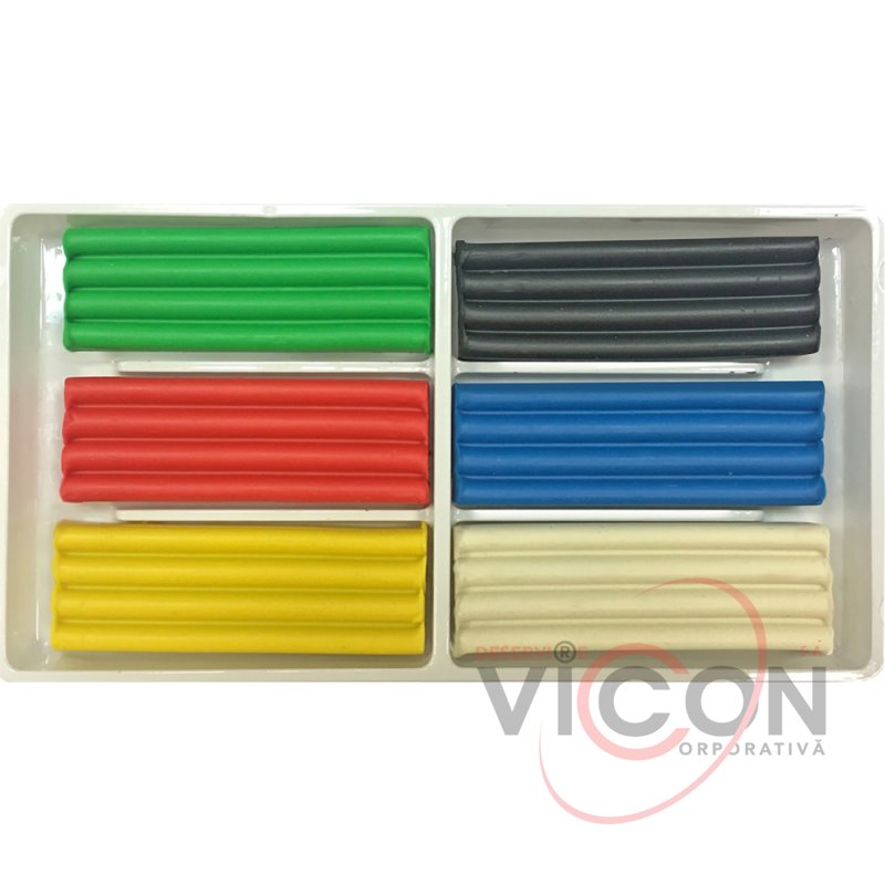 Цвета пластилина в наборе: белый, желтый, красный, светло-зеленый, синий, черный.