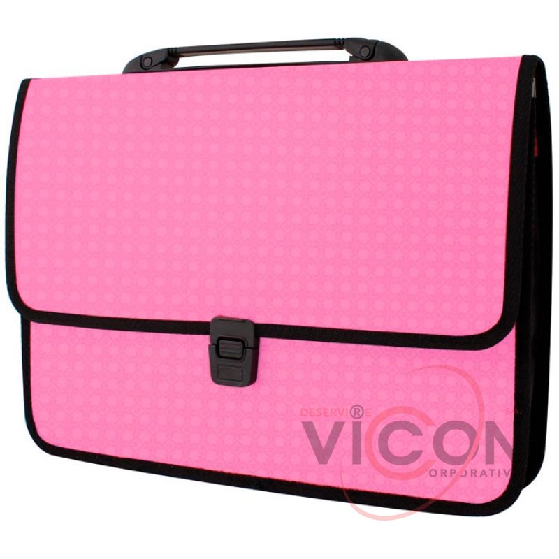 Портфель пластиковый A4 Economix на застежке, 1 отделение, фактура Вышиванка, розовый