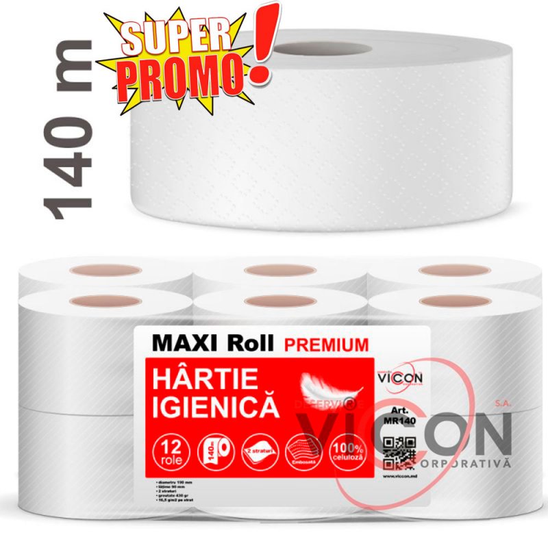 Туалетная бумага Premium Maxi Roll, 2 слоя, 140 м (большая намотка)