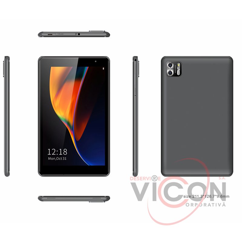 PRITOM Tab 8: SIM Slot 4G, 8" 1280x800, Quad core 2GHz, 4GB RAM. 64GB ROM, WiFi 5, 2+8MPx camera, 5000mAh, Android 13 + certificat GMS