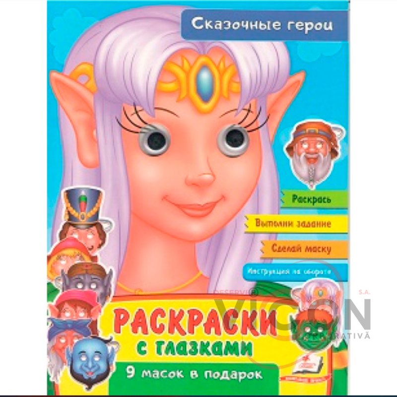 Раскаски с глазками. Сказочные герои. 9 масок