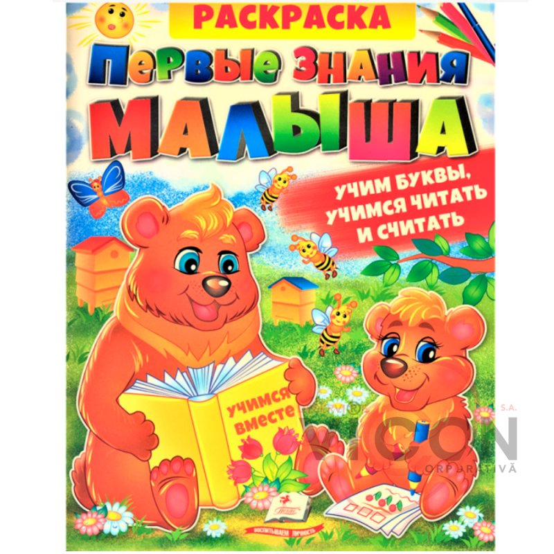 Раскраска. Первые знания малыша. Учим буквы, учимся читать и считать (25.5*20 cm)