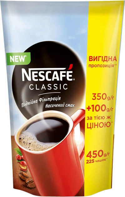 Растворимый кофе Nescafe Classic, мягкая упаковка 450 г (225 чашек)